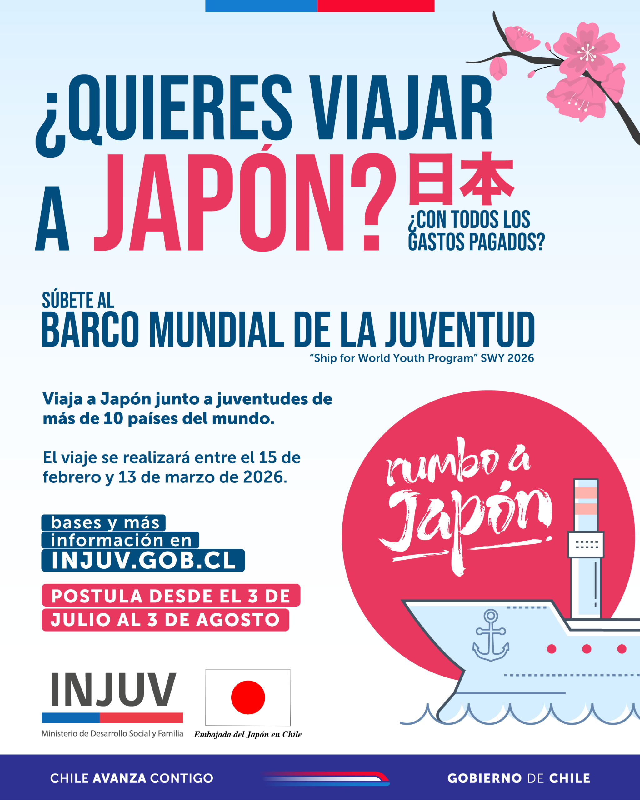 Portada » Jóvenes podrán viajar a Japon en el “Barco Mundial de la Juventud – SWY 2026”